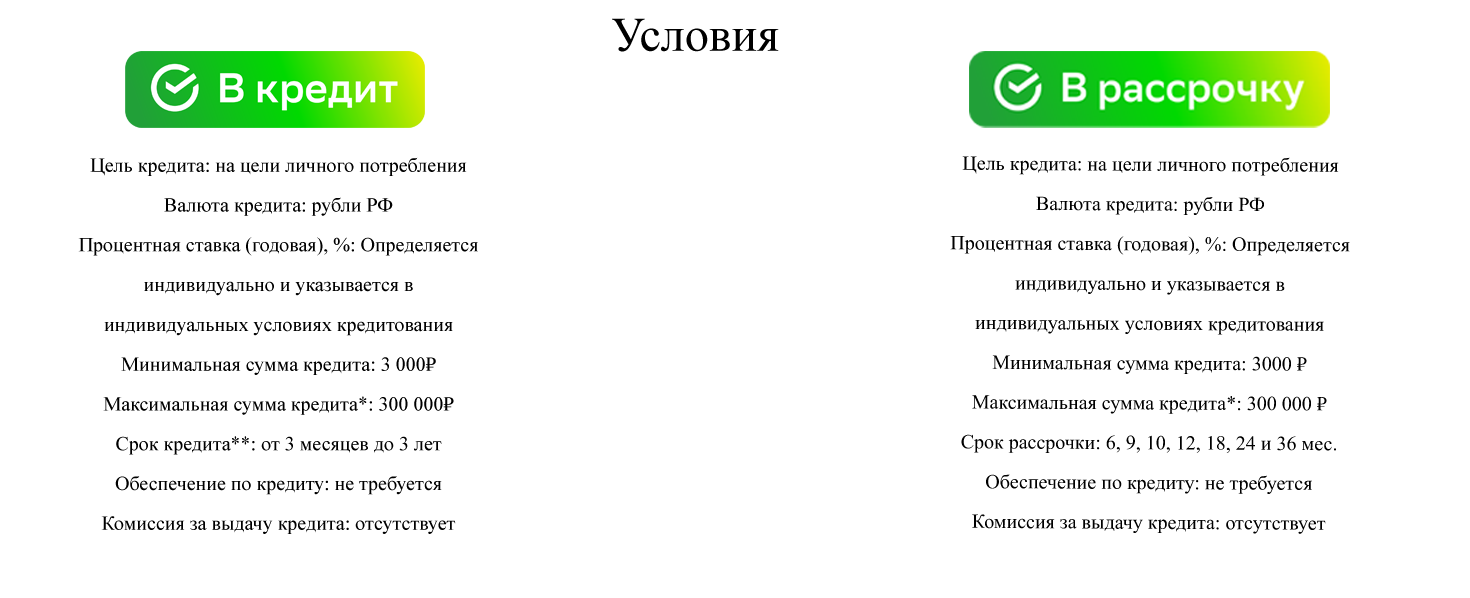 Подробнее ознакомиться с условиями кредитования вы можете на сайте: https://www.sberbank.com/ru/person/credits/money/pos