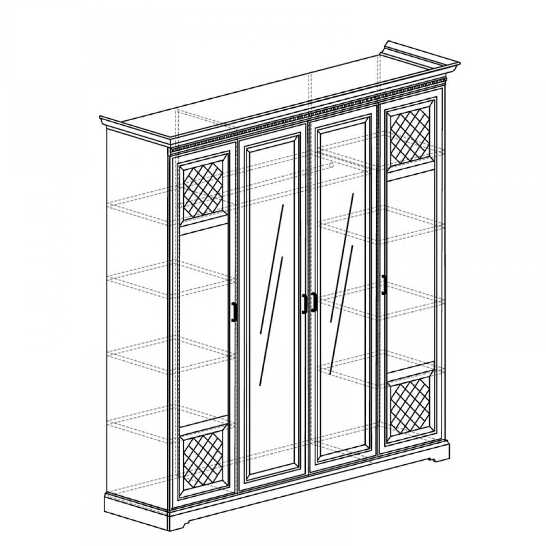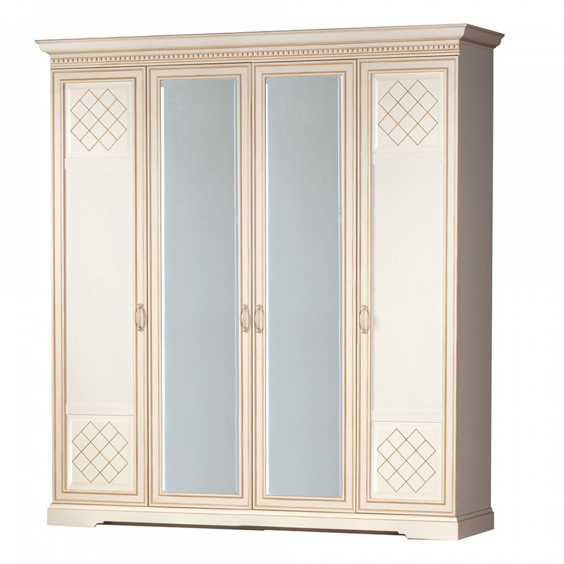 Фасады: МДФ, декор – кремовый белый, патина, зеркало с фацетом