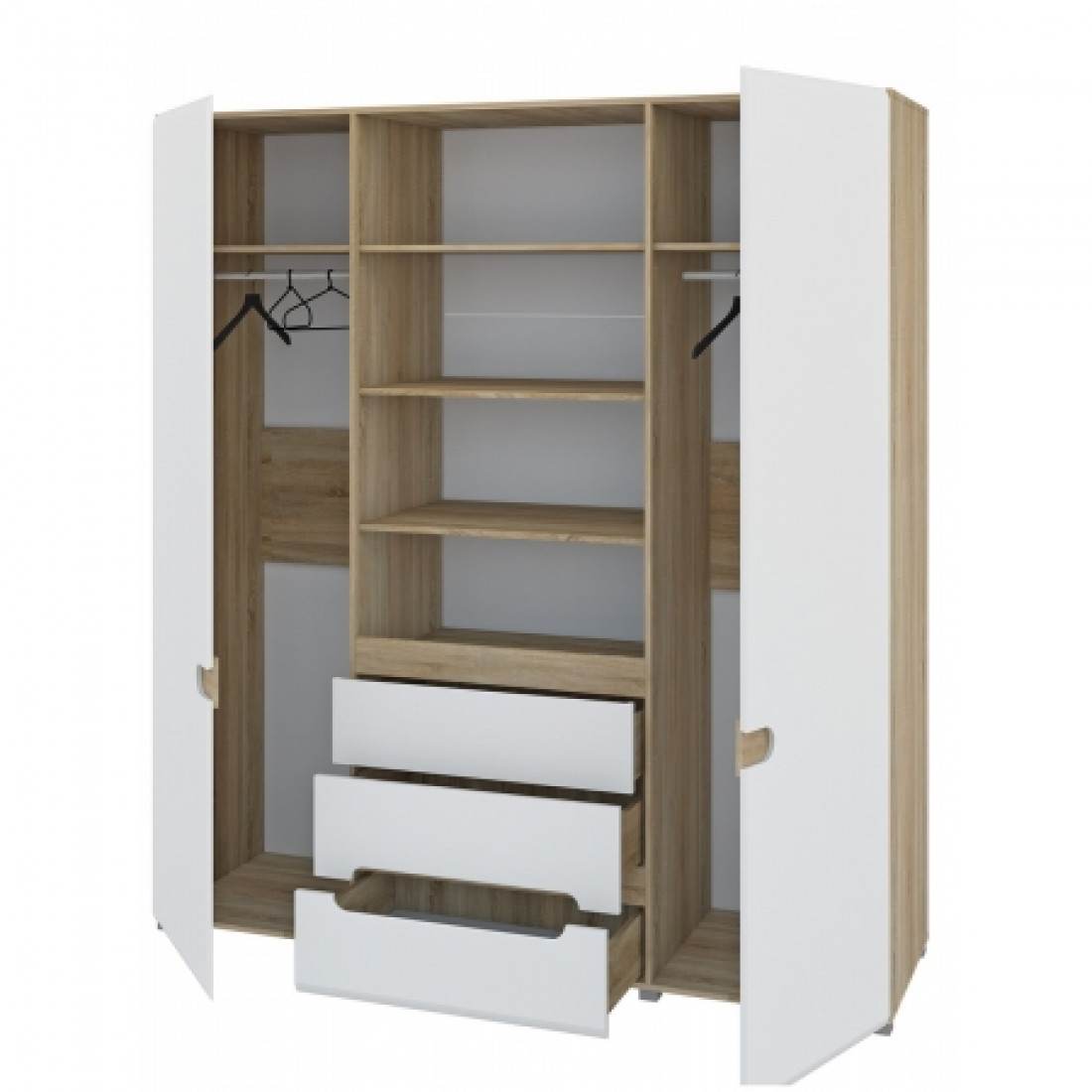 Четырехстворчатый шкаф для одежды и белья с зеркалом в спальню Леонардо МН-026-09-С1