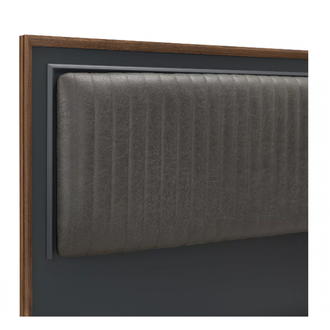 Спинка кровати с деревянной облицовкой и мягкой центральной частью.