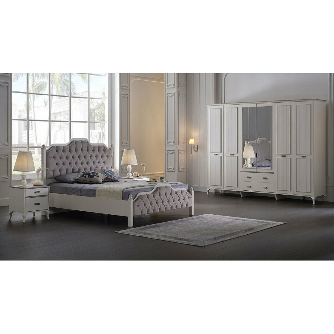 Шестистворчатый распашной шкаф для одежды и белья с зеркалом в спальню Andera (Андера) Andr-34
