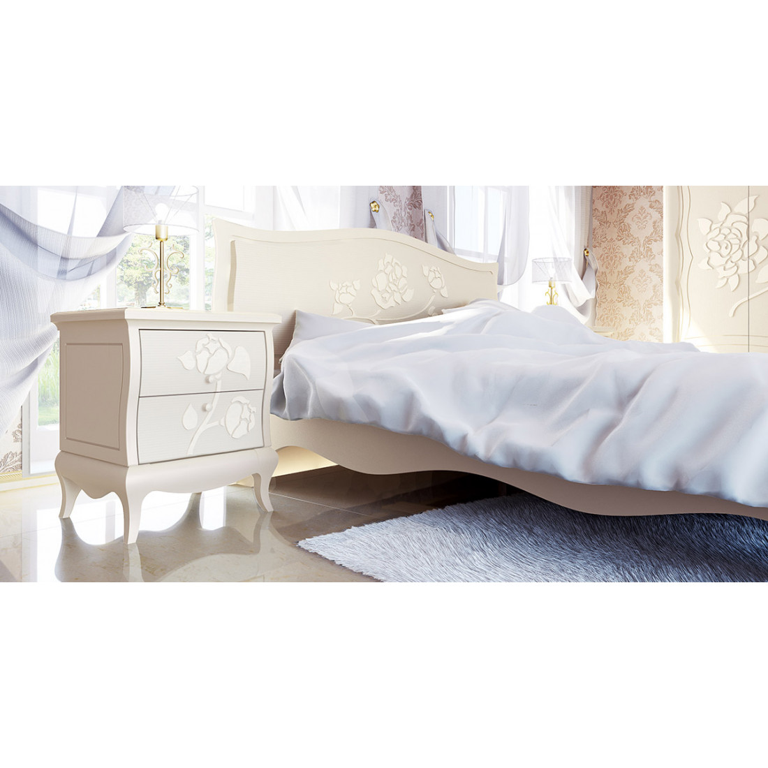 Двуспальная кровать с ортопедическим основанием МН-218-01М серии Астория от белорусской фабрики Мебель-Неман привлекает эксклюзивными формами резного основания и эффектным дизайном спинки. Выбранный оттенок аристократичной слоновой кости с имитацией крашенного массива добавляет визуальной ценности изделию. Купить недорогую и стильную двуспальную кровать можно по недорогой цене, отдельно и дополнив другими элементами Астории.
