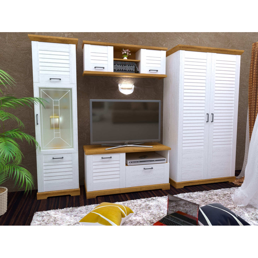 Создавайте романтичный и спокойный интерьер с мебелью для гостиной «Кантри». Отсылки к натуральным материалам, несколько вариантов расцветки, уникальный дизайн и разнообразие модульной системы. Сделайте ваше жилое пространство по-настоящему уютным и изысканным.