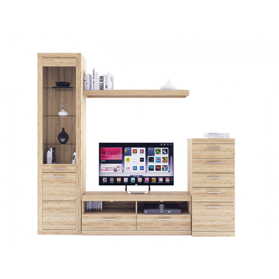 2. 4 варианта тумб RTV с выдвижными ящиками на шариковых направляющих. 2 размера надставных полок для RTV-тумб (полка TVB и полка TV), позволяющих установить выше телевизор. Варианты навесных полок, соответствующих по размеру тумбам для телевизора. Тумба RTV 2S2NL имеет глубину 351 мм, что позволяет составить модули, имеющие такую же глубину, в одну линию без выступающих элементов.