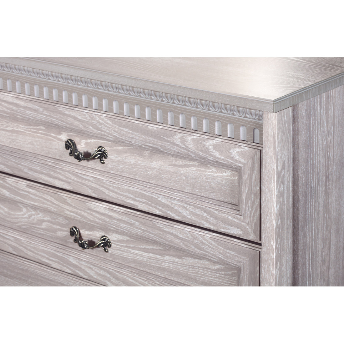 Фасады: МДФ, декор – дуб оксфорд серый, патина, зеркало с фацетом