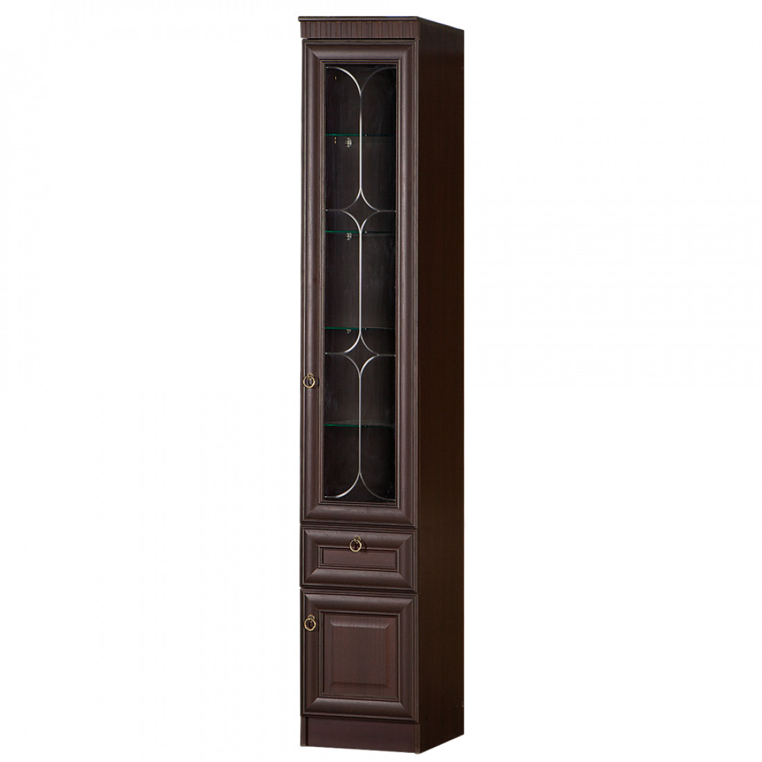 Фасады: МДФ, декор – денвер темный, стекло с гравировкой
