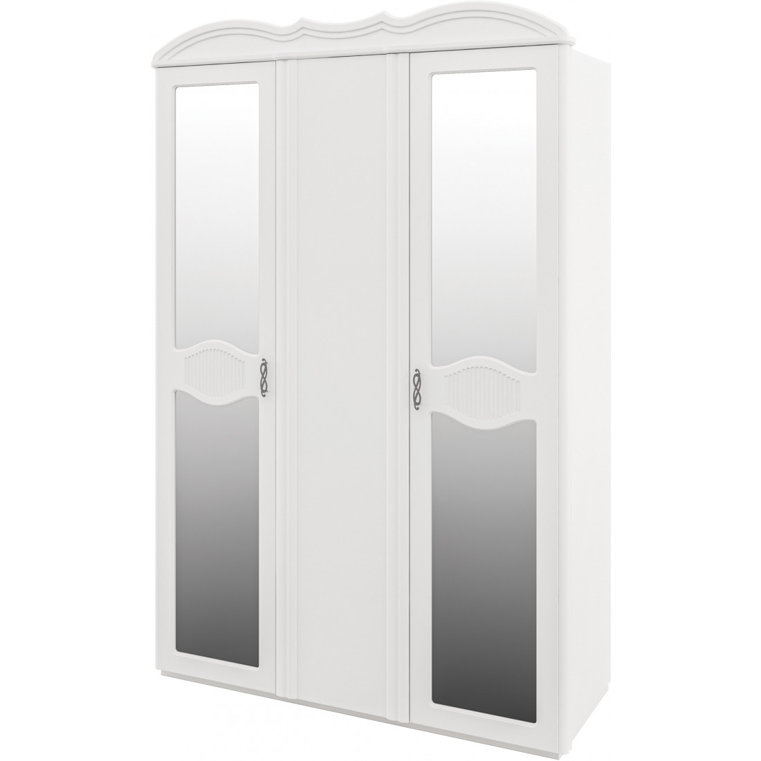 Трехстворчатый шкаф для одежды МН-025-23 в спальню серии София от Мебель-Неман невольно очаровывает выдержанным аристократичным дизайном. Зеркальные створки изящно и стильно дополнены декором с витиеватым рисунком резьбы, нанесенной по уникальной 3D-технологии. Обрамление в виде объемного карниза придает изделию законченный вид. Купить хороший элегантный трехстворчатый шкаф в Меланго можно по недорогой цене с доставкой.